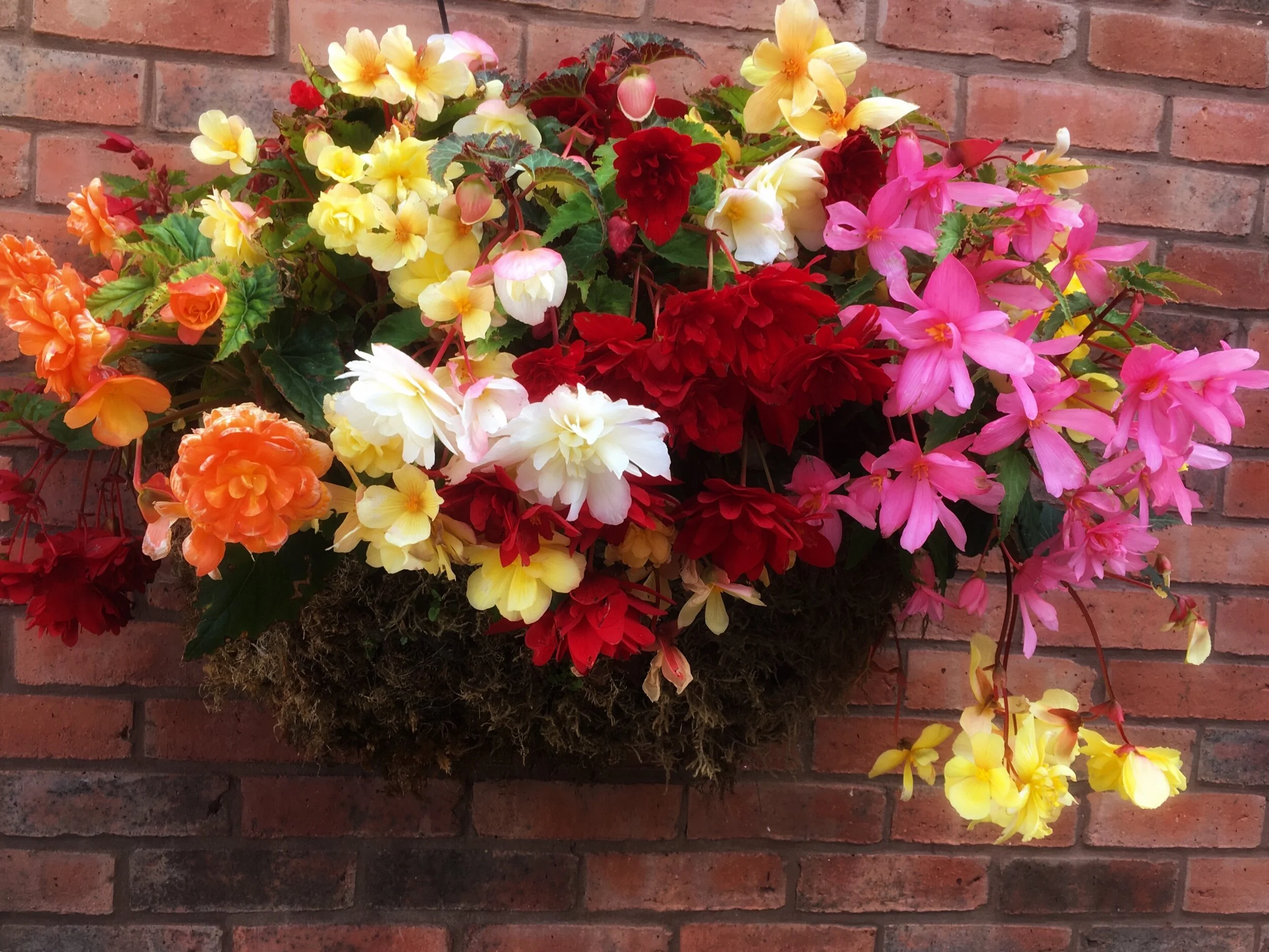 Our range includes our most popular traditional mixed plant basket and in the summer single plant schemes such as trailing begonia,fuchsia, geranium of petunia or bedding such as begonia or busy lizsie.