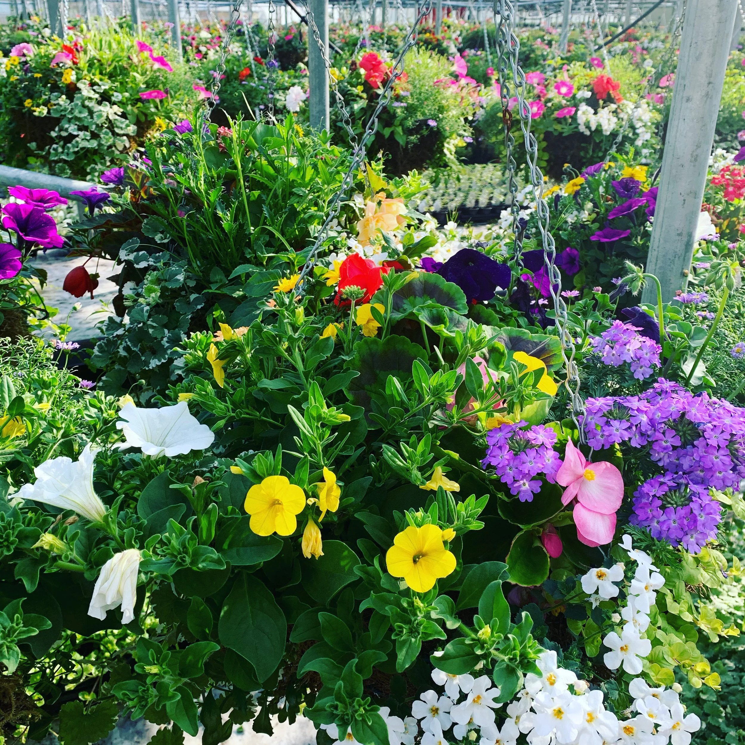 Over the past 20 years or so we have developed a reputation for crafting high quality hanging baskets at nursery prices. We hand craft them at the nursery for collection from mid-May until the end of June and again with winter hardy plants throughout October.